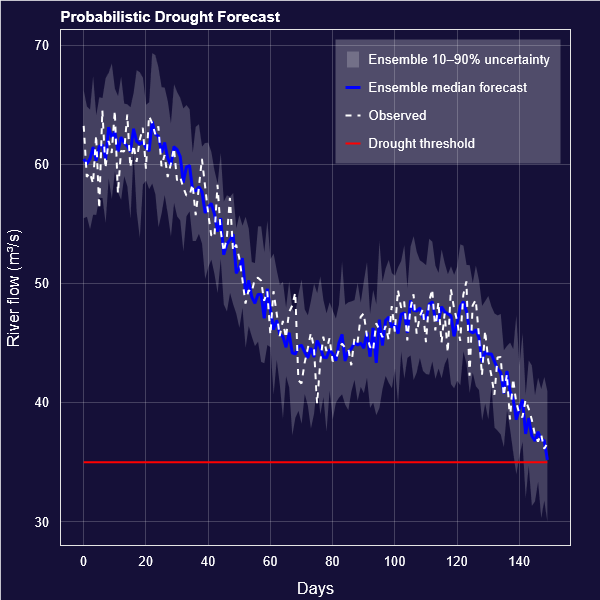 Les modèles développés par aiQua combinent intelligence artificielle, données environnementales multi-sources, modélisation hydrologique et théories de la décision dans l’incertain, afin de proposer des outils adaptés aux réalités opérationnelles de la gestion de l’eau.